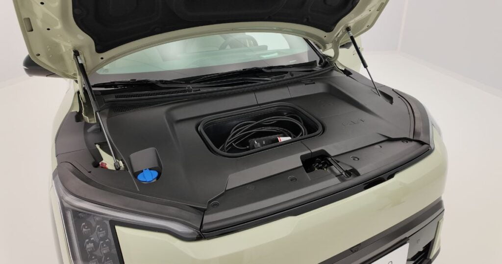Bilen bygger på Kias och Hyundais E-GMP-plattform men är inte 800V utan får nöja sig med 400V-teknik. Det betyder att vi inte kommer ha några laddstopp på 15–20 minuter. Istället så landar snabbladdning på 108 kW för SR och 128 kW för LR. Kia menar dock att 10–80% ska ta omkring 30 minuter så laddkurvan lär se bra ut. För AC-laddning är det 11 kW 3-fas som gäller med 22 kW som tillval först 2026.