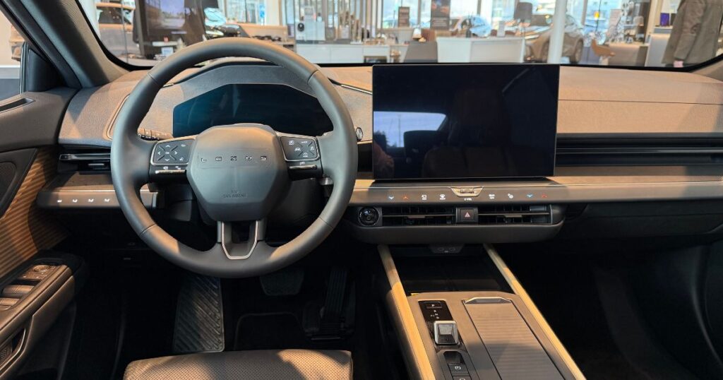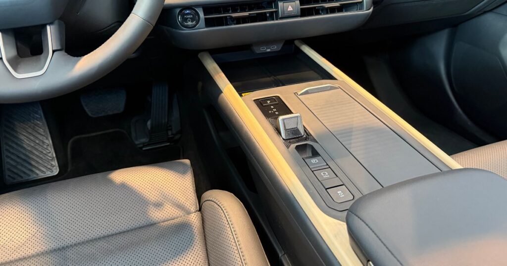 I framsätet fortsätter det nya och moderna. Man har tagit bort sådant som inte behövs enligt Lexus, men frågan är om de inte gick ett steg för långt. Det sitter knappar både vid dörren och under mittenskärmen på en grå bakgrund för att ställa in minnesfunktioner för stolar samt klimatkontroll, men påminner inte den raden om den som Kia EV9 har? Det ska sägas att tryckkänslan är bättre i denna än i EV9.