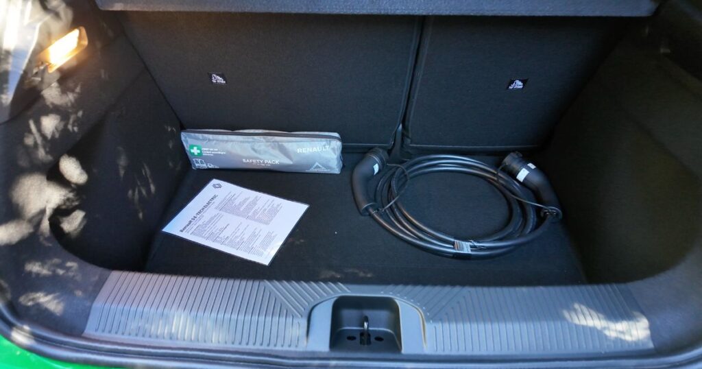 Laddporten sitter höger fram, alltså precis framför förardörren, och kan ladda i 11 kW via AC. Detta är normalt för de flesta bilar men första gången en Renault sjunker ner så lågt, de har alltid kört med 22 kW eller mer i sina bilar tidigare. För DC-laddning så är det 80 kW med det lilla batteriet eller 100 kW med det stora. Man säger att 15–80% ska ta 30 min vilket betyder att laddkurvan kommer antagligen dippa rätt fort.