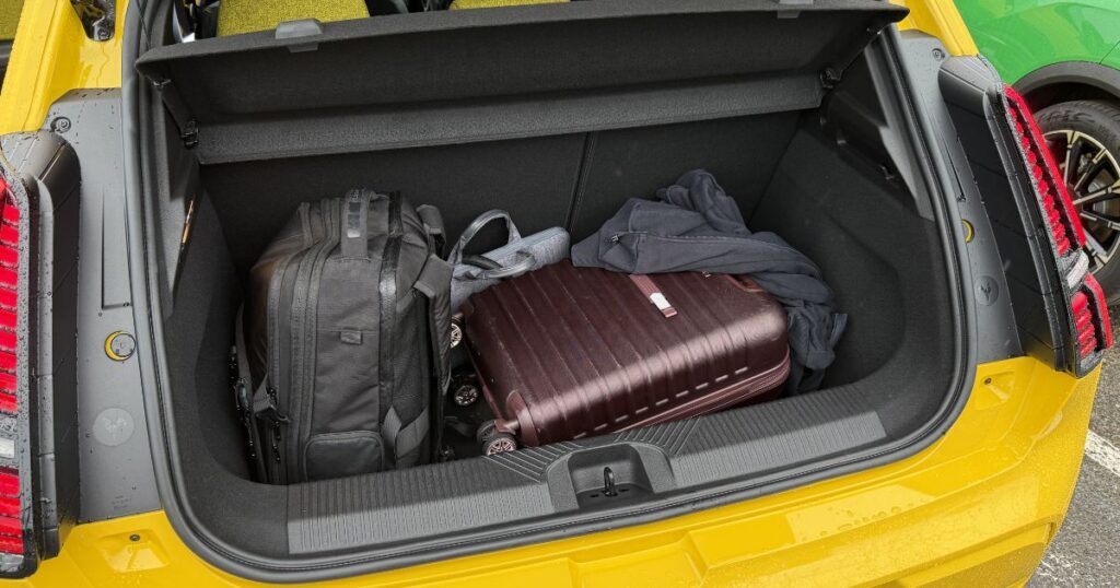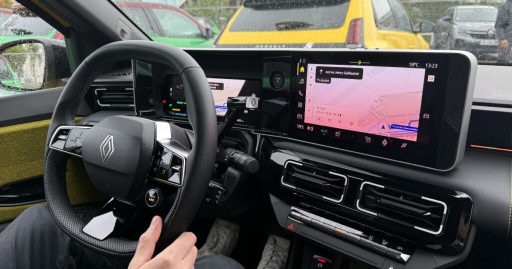 Den känns otroligt tyst vilket är märkligt. Jag körde nyligen Renault Scenic och bullernivån var mitt största klagomål där men här saknas det ljudet. Vi kör på franska vägar som är mycket slätare än svenska så det gäller att hålla i tanken. Däcken som sitter på är 18” med 55-profil. Detta är standard på samtliga R5 då det ger den ”perfekta proportionen” enligt Renault.